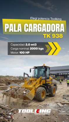 La Pala Cargadora Toolking TK 938 es el equipo de alto rendimiento diseñado para quienes no pueden permitirse detener su operación. Con un motor de 100 HP y un balde de 2.0 mt3, esta unidad ofrece la productividad necesaria para los desafíos más exigentes en el sector vial y agrícola.
